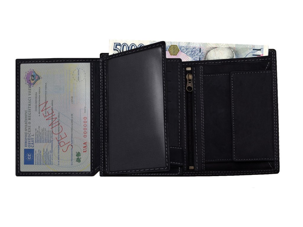 2 compartimente pentru bancnote, 3 pentru documente, 12 pentru carduri